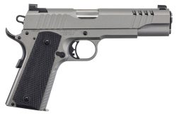 Auto-Ordnance 1911TCAC6 1911 A1 45 ACP 7+1 5″ Savage Silver Cerakoate, Serrated/Ported Slide, Black Rubber Grips, Fixed 3-Dot Combat Day Sights