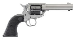Ruger 2003 Wrangler 22 LR 6 Shot 4.62″ Silver Cerakote, Silver Cerkoate Aluminum Frame & Cylinder Black Checkered Polymer Grips