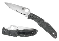 Spyderco C122PSBK Tenacious Lightweight 3.39″ Folding Part Serrated Satin 8Cr13MoV SS Blade/Black Bi-Directional Texturing FRN Handle Includes Pocket Clip