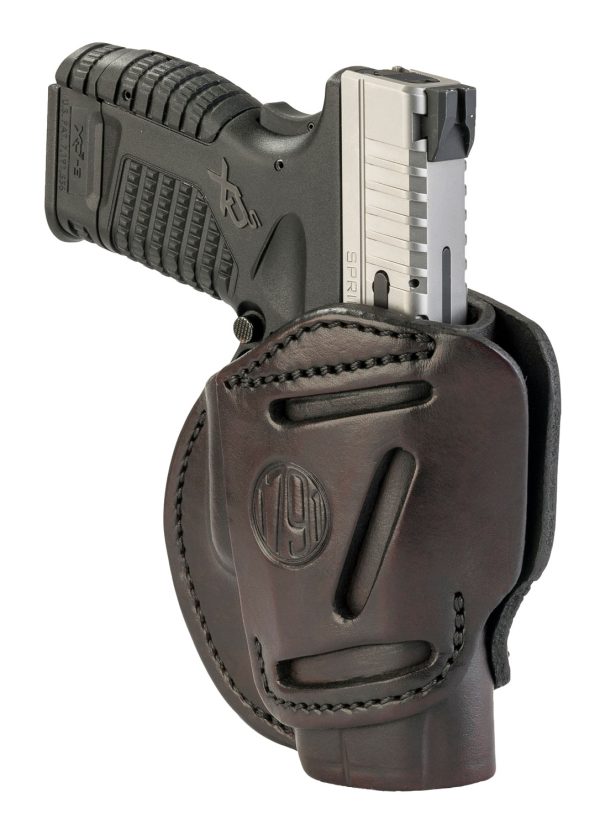 The 3-Way Concealment & Belt Leather Holster by 1791 Gunleather is the ideal balance of protection and comfort. It allows you to position your firearm on your belt in Vertical, Horizontal, and Cross-draw cants that accommodate your particular carry style. Because this is an ambidextrous holster, both Right and Left-Handed carrying are possible in just one holster. The 3-Way is handcrafted using premium 100% Certified American, Heavy Native Steer Hide leather with open top design for quick draw, multi-fit design & reinforced stitching ensuring quality, security, and a lifetime of enjoyment. Compatible with Glock 26, 27, 28, 33, 39; Ruger Max 9; S&W Shield Plus; Sig Sauer P239; Springfield XDS, XDE, XD (9 and 40 cal.); Taurus G2, G2c, G3, G3c, 709 Slim and similar frames.