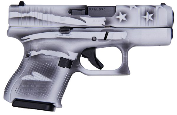 Glock, MFG# PA275S204-BWFLAG, UPC: 810100235192, UOM: EA, G27 Gen 5, 40 S&W, 3.5″ Barrel, Fixed Sights, BGDF flag, 3 9-rd Mags, GLOC, GLOCHG10, GLOCHGALL, HG10, HGALL