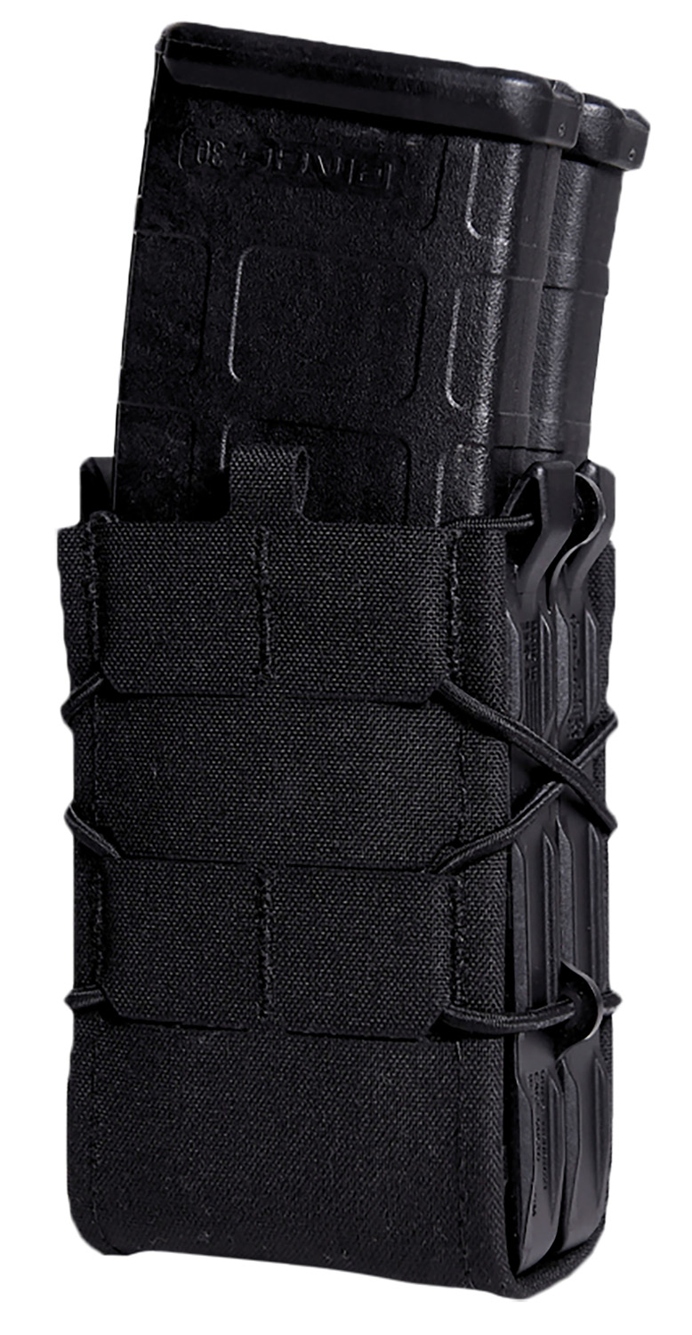 The Generation 2 X2R TACO is sleeker, lighter, and more versatile than the original. Like the Original X2R TACO, the Gen 2 X2R TACO holds 2 of virtually any rifle magazine. Contoured molded sides allow easy insertion of magazines. Integrated shock cord provides adjustable retention. Constructed from laser-cut nylon laminate wrapped over a woven thermaoplastic core, Gen 2 TACOs weigh almost 20% less than the Originals. 1/2 inch interval MOLLE on the back of the TACO allows for both MOLLE and belt mounting options. With the addition of an HSG OTR Cover accessory, any Gen 2 TACO can be set up covered or open-top