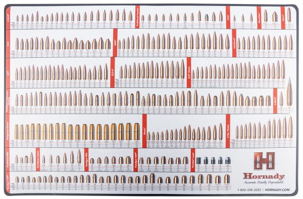 The reference tool for your reloading bench. This non-skid bullet mat features the Hornady bullet line with corresponding caliber, diameter, weight, ballistic coefficient, sectional density, and item number.